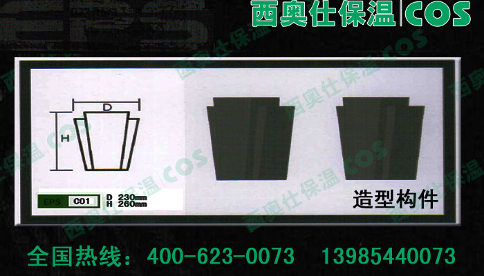 西奧仕(COS)EPS裝飾線條、構(gòu)件是由脫模B2級(jí)防火的聚笨乙烯為主體,粘貼耐堿玻纖網(wǎng)格布,加以特殊的粘結(jié)外保護(hù)層復(fù)合而成