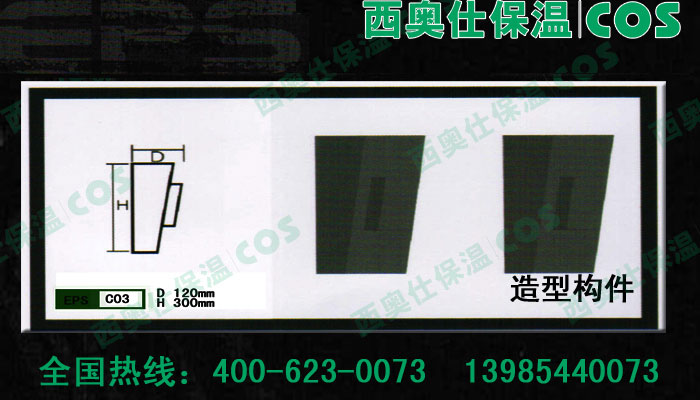 西奧仕(COS)EPS裝飾線條、構(gòu)件是由脫模B2級防火的聚笨乙烯為主體,粘貼耐堿玻纖網(wǎng)格布,加以特殊的粘結(jié)外保護(hù)層復(fù)合而成