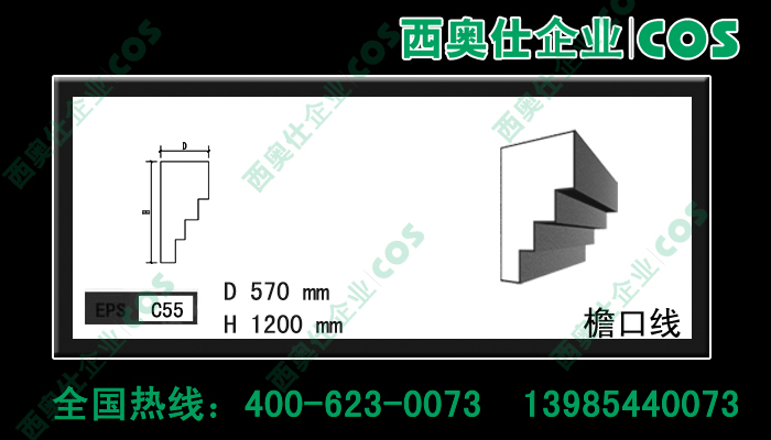 西奧仕(COS)EPS裝飾線條、構(gòu)件是由脫模B2級防火的聚笨乙烯為主體,粘貼耐堿玻纖網(wǎng)格布,加以特殊的粘結(jié)外保護層復(fù)合而成