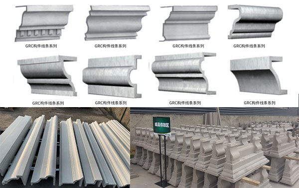 主要用于建筑細(xì)部裝飾構(gòu)件、幕墻板、外墻掛板、舊樓改造及GRC園林景觀制品等。有歐式裝飾柱、各種檐線、門窗頂套、門窗線套、裝飾花飾、仿真石材六類,可以按圖紙定做。