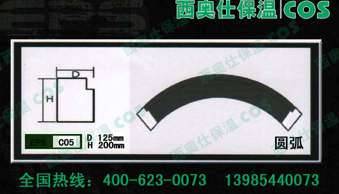 西奧仕(COS)EPS裝飾線條、構件是由脫模B2級防火的聚笨乙烯為主體,粘貼耐堿玻纖網格布,加以特殊的粘結外保護層復合而成