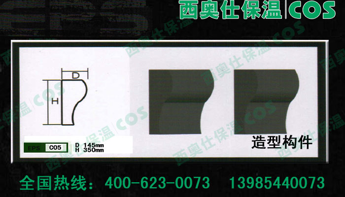 西奧仕(COS)EPS裝飾線條、構件是由脫模B2級防火的聚笨乙烯為主體,粘貼耐堿玻纖網格布,加以特殊的粘結外保護層復合而成