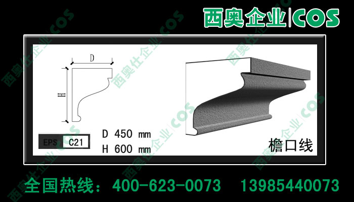 西奧仕(COS)EPS裝飾線條、構(gòu)件是由脫模B2級防火的聚笨乙烯為主體,粘貼耐堿玻纖網(wǎng)格布,加以特殊的粘結(jié)外保護(hù)層復(fù)合而成