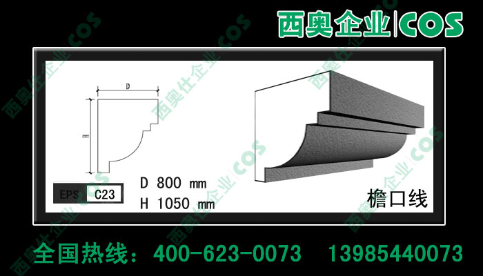 西奧仕(COS)EPS裝飾線條、構(gòu)件是由脫模B2級防火的聚笨乙烯為主體,粘貼耐堿玻纖網(wǎng)格布,加以特殊的粘結(jié)外保護(hù)層復(fù)合而成