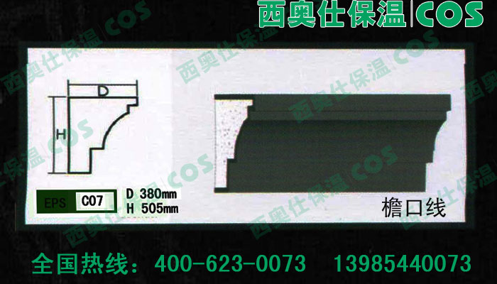 西奧仕(COS)EPS裝飾線條、構(gòu)件是由脫模B2級防火的聚笨乙烯為主體,粘貼耐堿玻纖網(wǎng)格布,加以特殊的粘結(jié)外保護(hù)層復(fù)合而成
