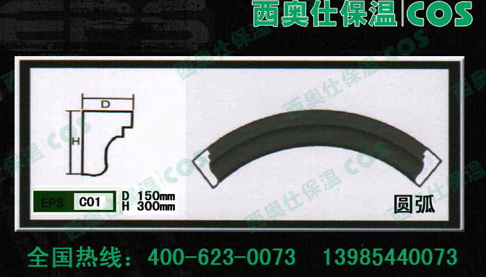 西奧仕(COS)EPS裝飾線條、構(gòu)件是由脫模B2級(jí)防火的聚笨乙烯為主體,粘貼耐堿玻纖網(wǎng)格布,加以特殊的粘結(jié)外保護(hù)層復(fù)合而成